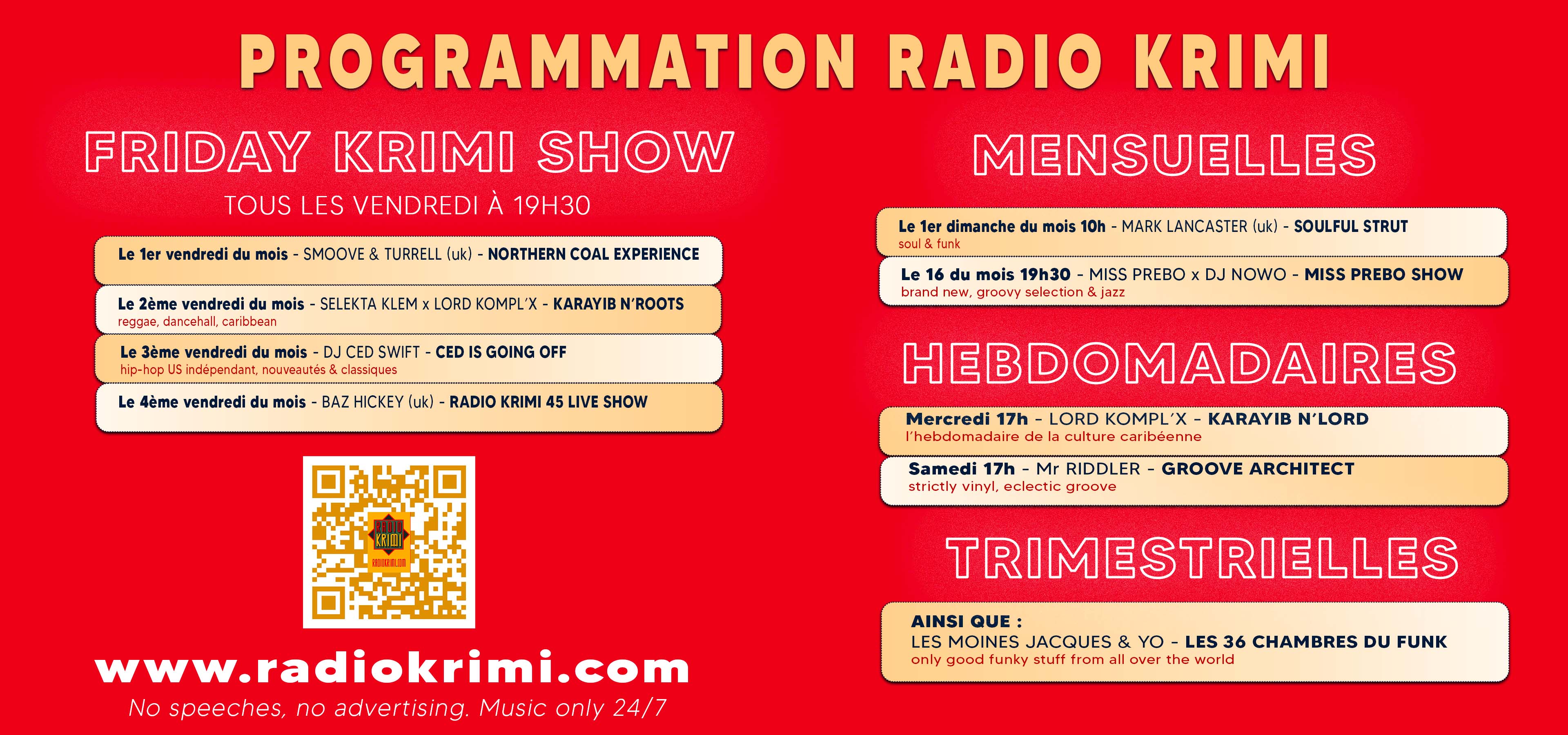 AVEC LE KRIMI FRIDAY SHOW, TOUS LES VENDREDIS À PARTIR DE 19H30, UNE ÉMISSION THÉMATIQUE MUSICALE POUR BIEN COMMENCER TON WEEK-END !